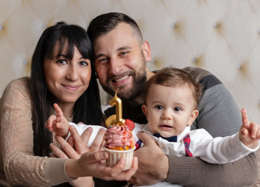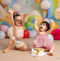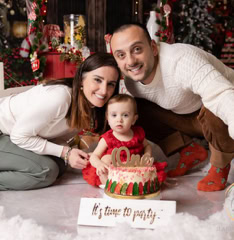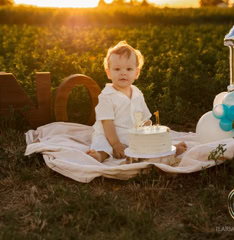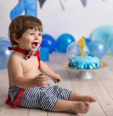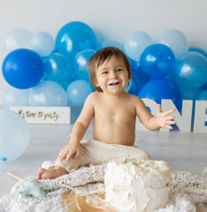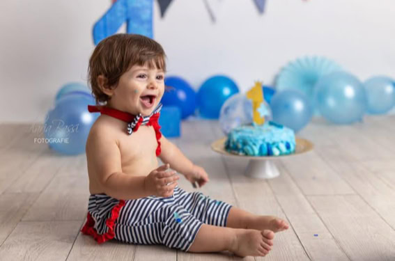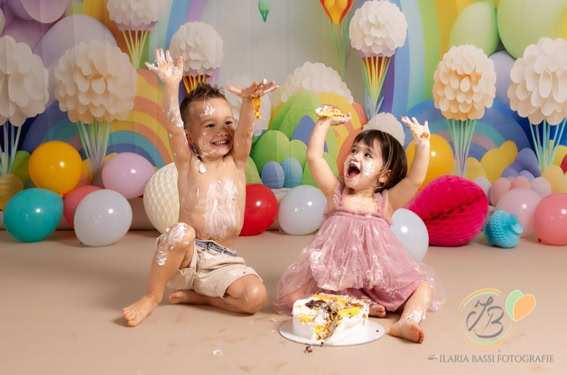 Il servizio “smash cake” celebra il primo compleanno (o anche più) in un set personalizzato con tonalità colorate o neutre oppure semplice con palloncini, prevede scatti di famiglia e singoli del bimbo/a e successivamente giochi con la torta, seguiti da un divertente bagnetto finale su set. La sessione dura circa 60 minuti. Prenotabile tra i 9 e 10 mesi del bimbo/a per garantire la personalizzazione di outfit e set.