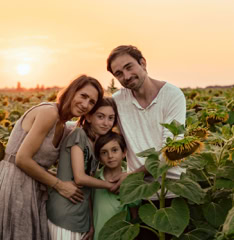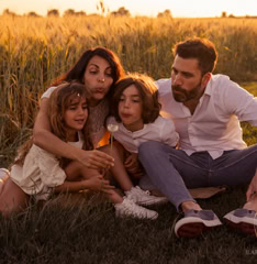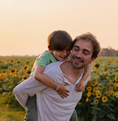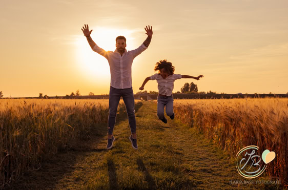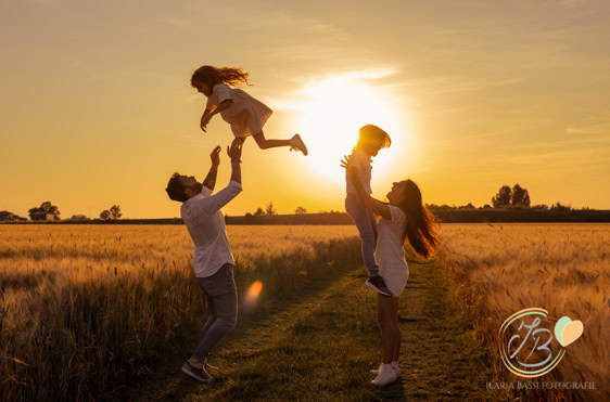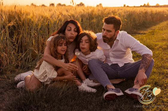 Il servizio fotografico al tramonto (o all’alba) è ideale per famiglie, coppie o bimbi con i nonni, perchè cattura momenti autentici immersi nella natura, tra vento, fiori e luce calda. Ideale per ambienti in campagna o al mare, offre scatti spontanei e memorabili. Va prenotato almeno un mese prima per evitare che l’agenda sia già piena per la vostra data ideale.