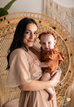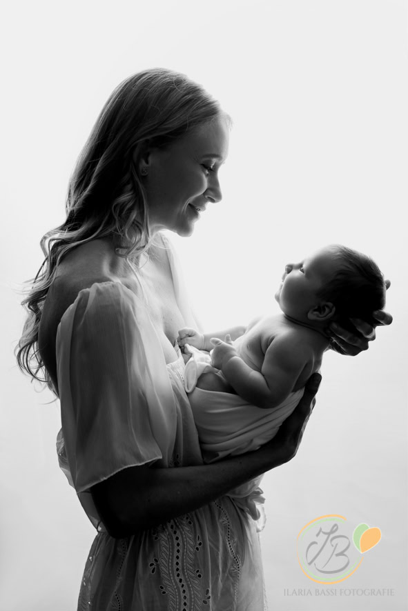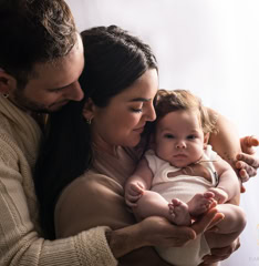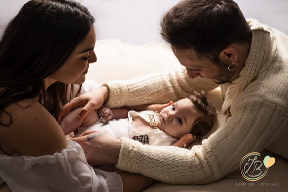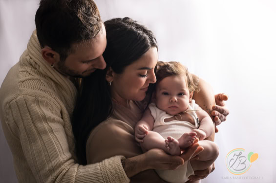 Il servizio bebè, ideale per neonati tra 2 e 5 mesi, propone scatti lifestyle in tonalità neutre, catturando momenti speciali da svegli o addormentati. Include ritratti del bimbo da solo e con la famiglia, con possibilità di scatti intimi di allattamento su richiesta. La sessione dura 1 e mezza circa e vengono utilizzati abiti e accessori dello studio per Mamma e bimbo/a.