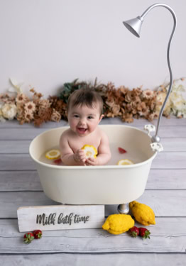 Il servizio sitter è ideale per bebè di 7-10 mesi, l’età più divertente in cui sanno stare seduti da poco e scoprono l’autonomia. Catturo la loro curiosità e i loro sorrisi in scatti minimal o vivaci, con outfit e set personalizzati. Prenotabile dal 4° mese, la sessione dura circa 40 minuti e si può scegliere tra set a tema, naturali o con bagnetto (milk bath).
